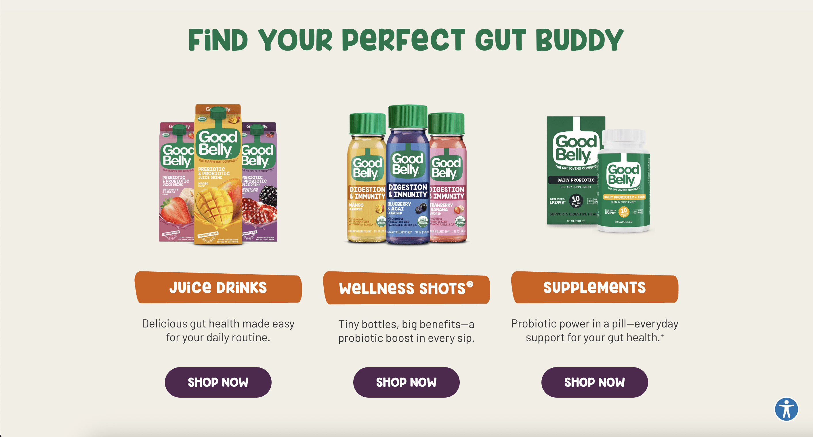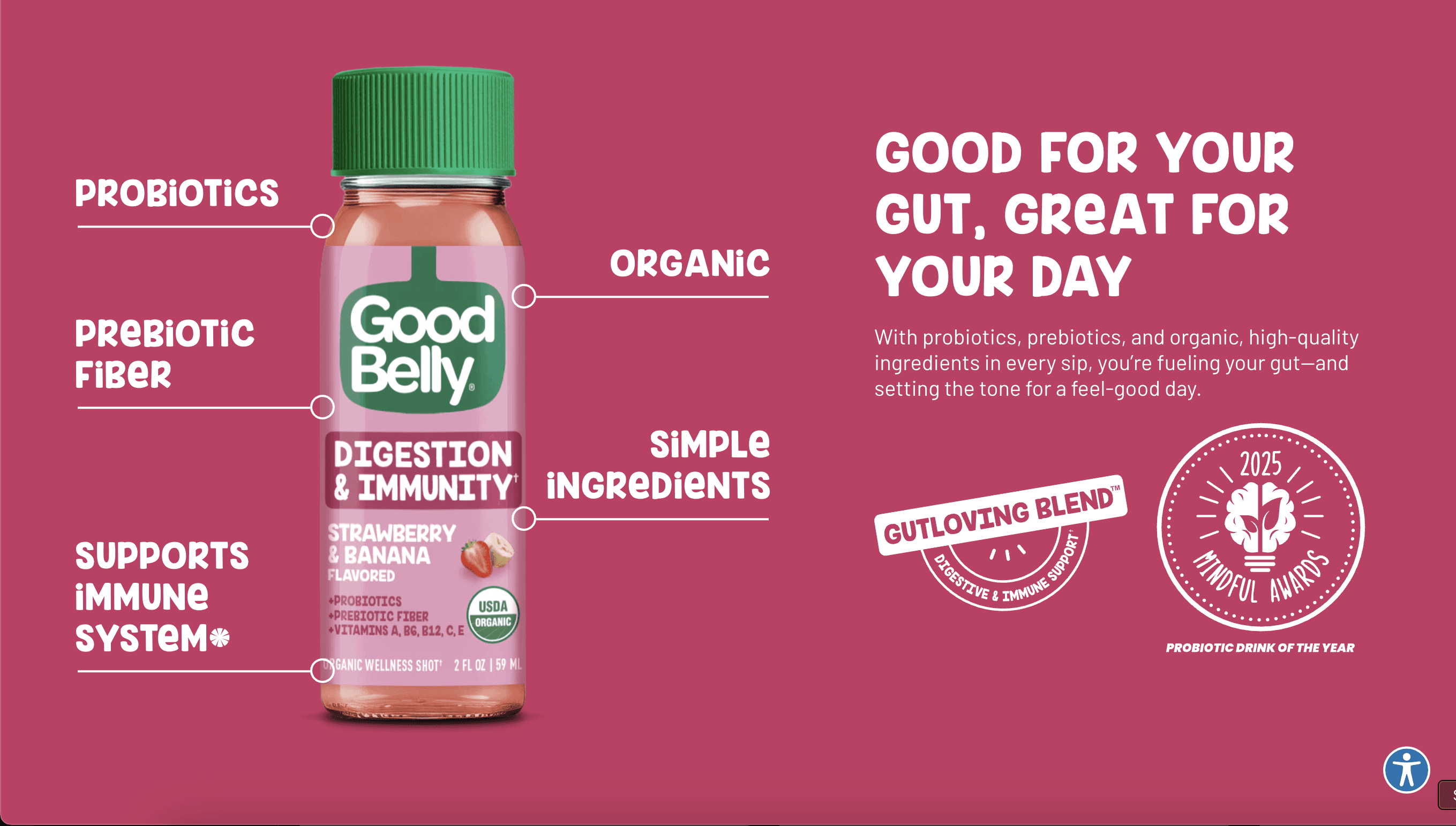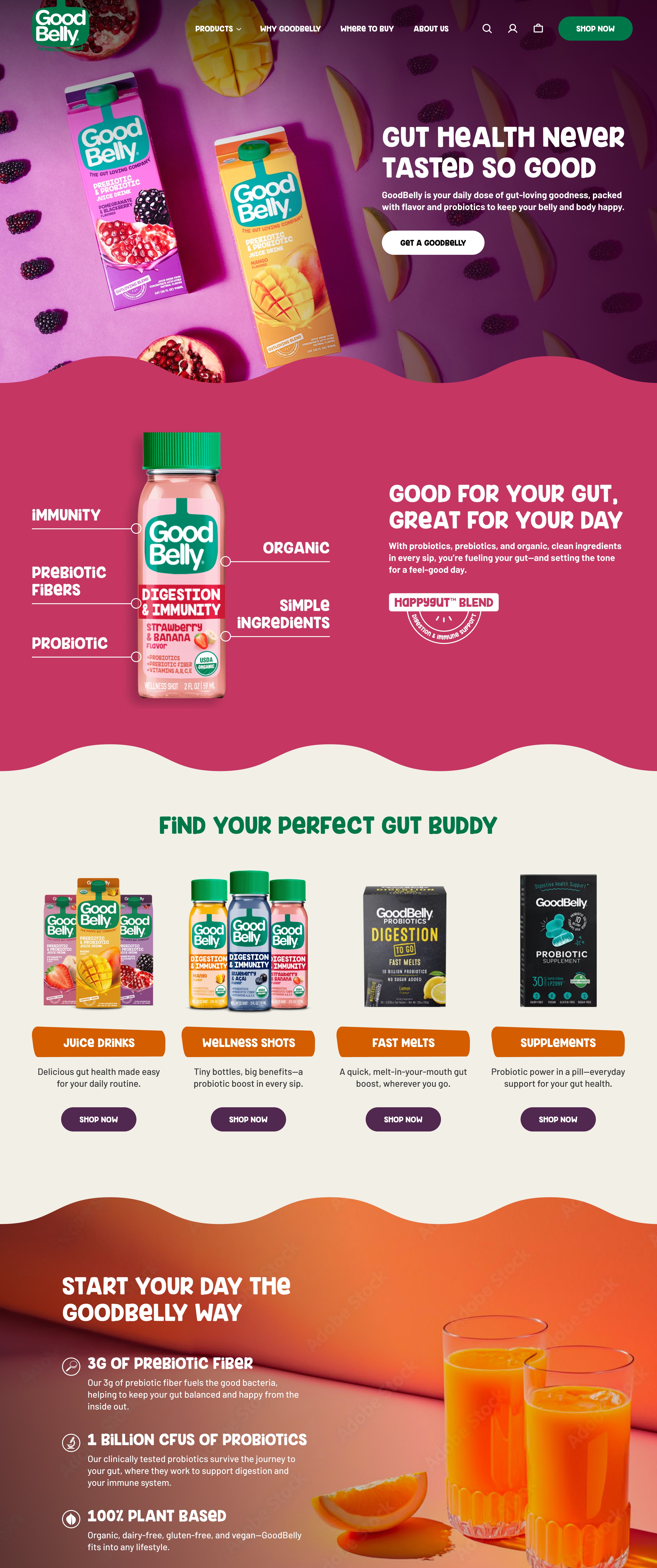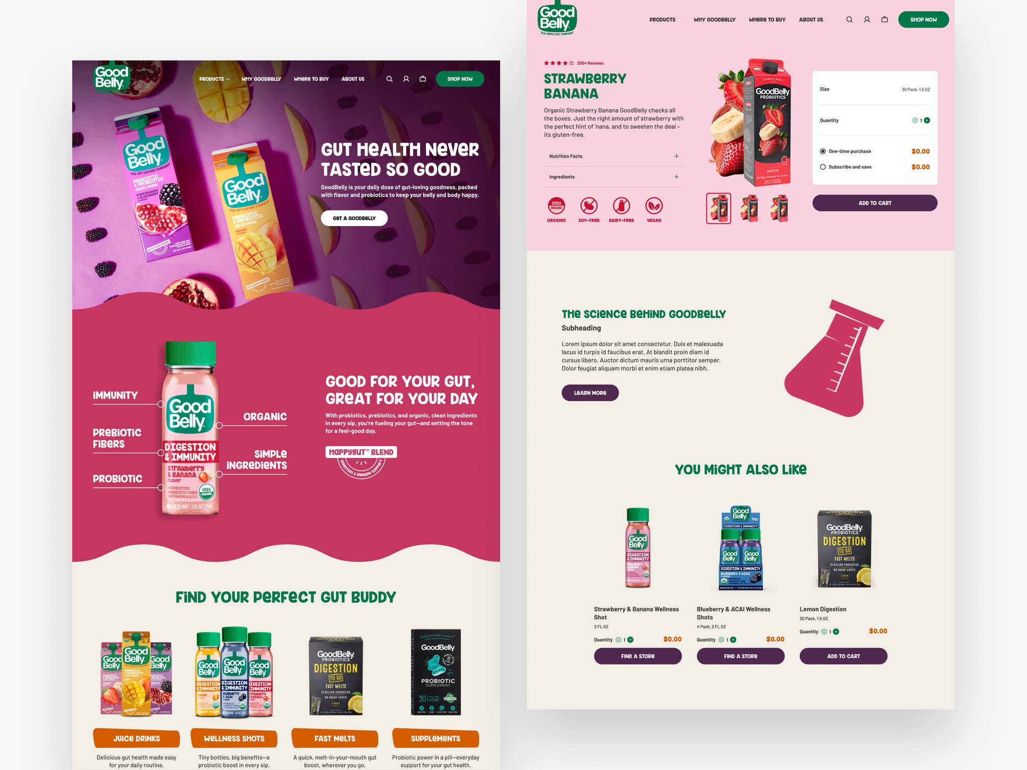 The redesign transformed GoodBelly’s website into a lively, intuitive experience that better reflected the brand’s personality and helped users connect more easily with its products.