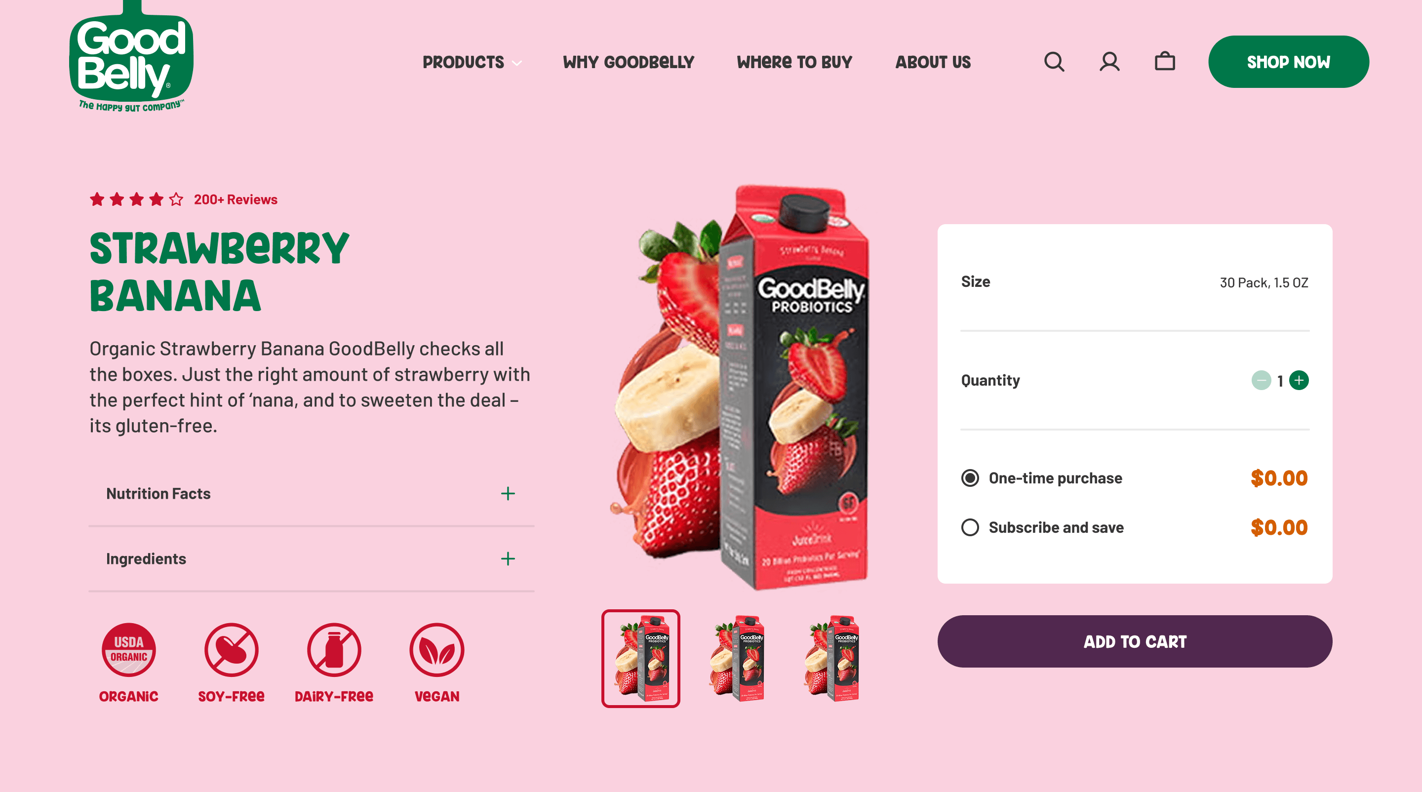 GoodBelly had strong product and brand recognition, especially in the natural foods / probiotic drinks space—but their website was holding them (and users) back in several key ways: